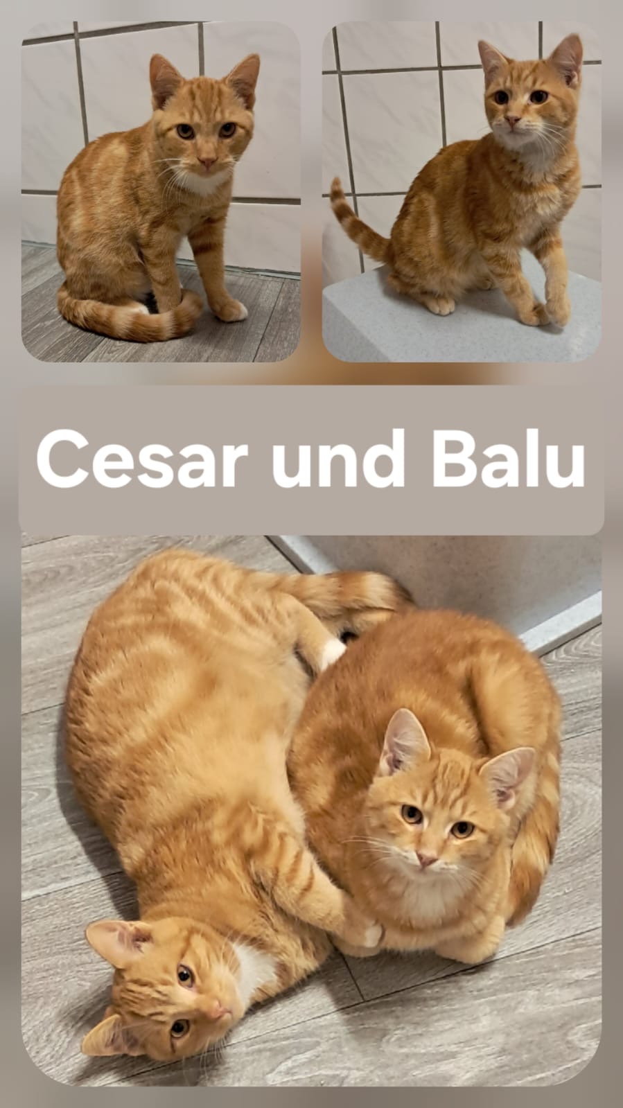 heute gibt es das sympathische Geschwisterduo Balu und Cesar. Zwei ca. 05/2025 geborene, rot getigerte Kater, super neugierig, verspielt, aktiv, aber auch zwei große Schmusekatzen.