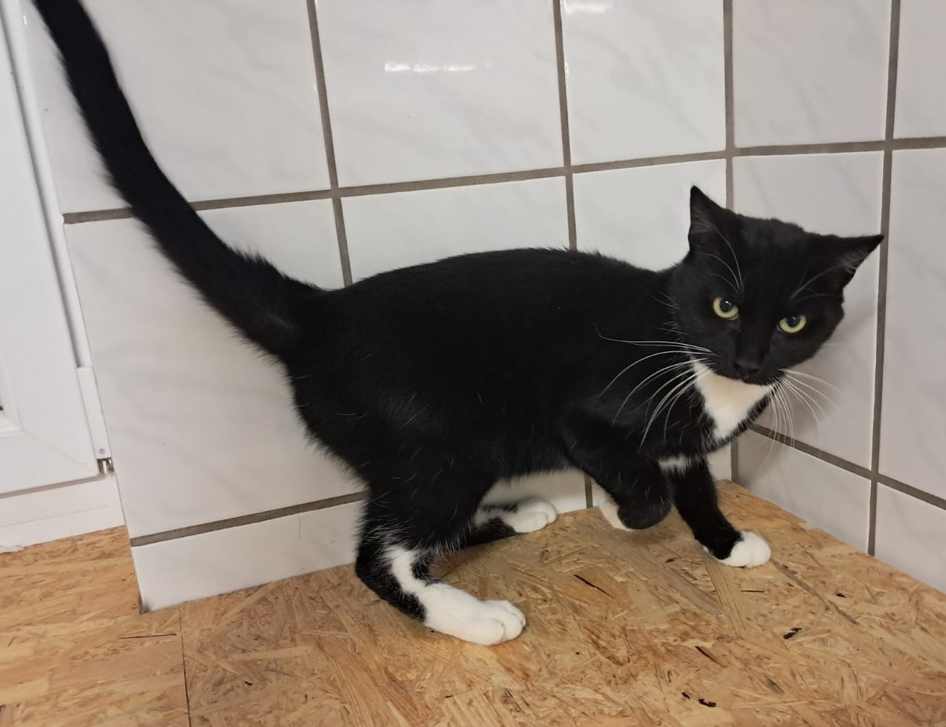 Der schwarze Kater mit weißer Brust und Pfoten ist ca. 2023 geboren. Gaston sucht zwingend einen Platz mit Möglichkeit zum Freigang nach erfolgter Eingewöhnung. Er ist sehr zutraulich, verschmust und unfassbar verspielt, aber auch geschickt im Öffnen von Türen, Schubladen oder Topfdeckeln. Mit anderen Katzen ist Gaston verträglich, er ist aber, gerade anderen Katern gegenüber, sehr dominant und im Umgang mit ihnen verspielt und auch mal etwas wild. Füttern sollte dann allerdings getrennt möglich sein, da Gaston wirklich alles in kurzer Zeit aufsaugt.