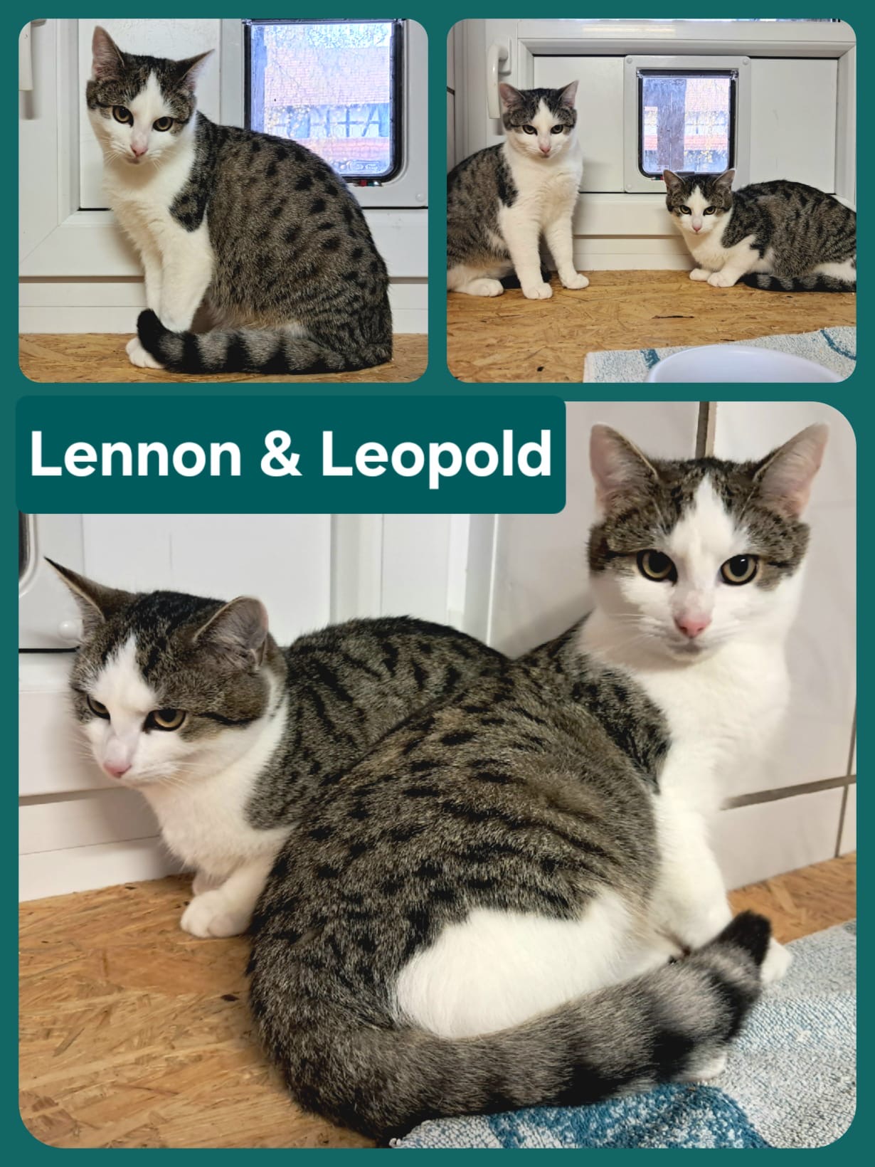 heute wollen wir Euch Lennon und Leopold vorstellen. Zu ihnen gehören auch noch die beiden Katzendamen Laura und Leia. Die vier Geschwister sind ca. 04/2025 geboren. Von den beiden weißen Jungs mit schöner grauer Tigerung ist aktuell Lennon der etwas Mutigere. Er lässt sich gerne streicheln. Leopold ist da noch etwas skeptischer. Einem Leckerchen kann aber keiner widerstehen. Die beiden spielen gerne, egal ob mit oder ohne Mensch. Bei Abgabe sind die Jungs bereits kastriert, natürlich auch geimpft, entwurmt und zur Kennzeichnung gechipt.